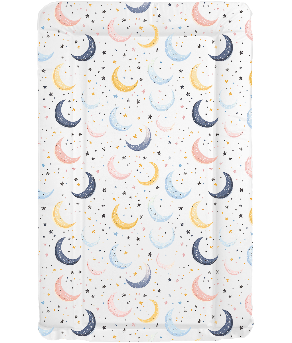 Easy wipe down PVC changing mat with raised sides. Approx size 79 x 46 cm.